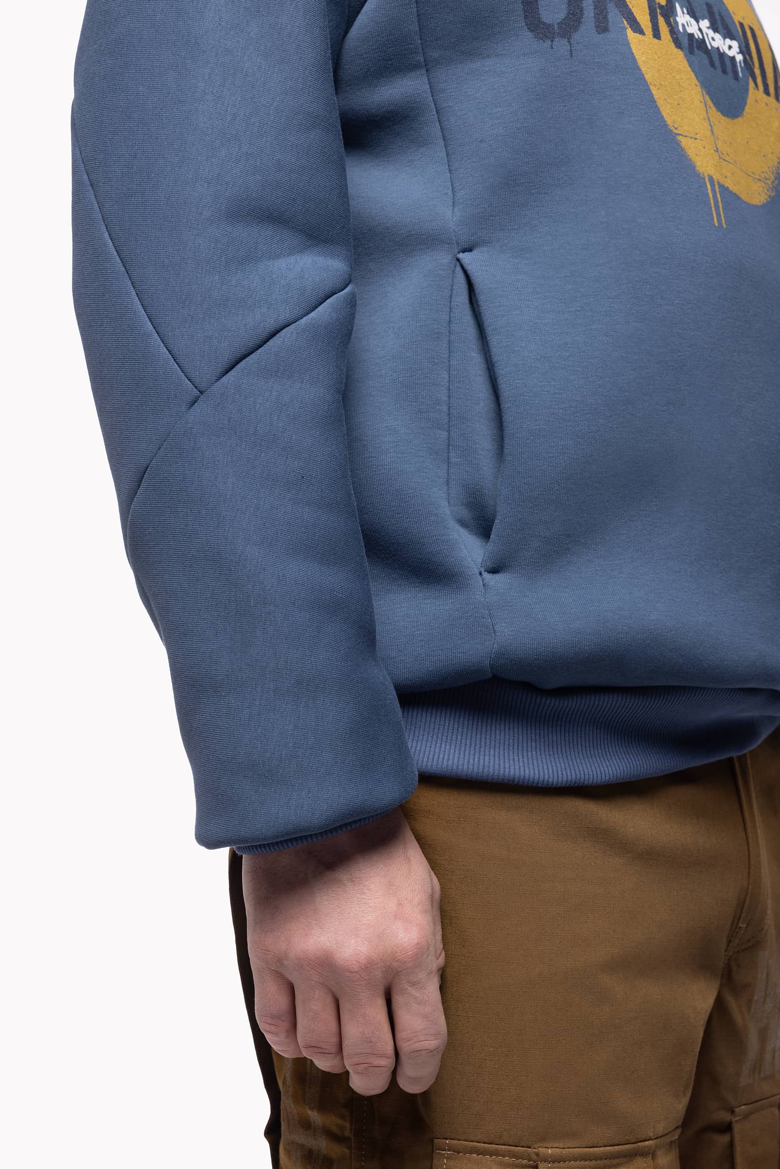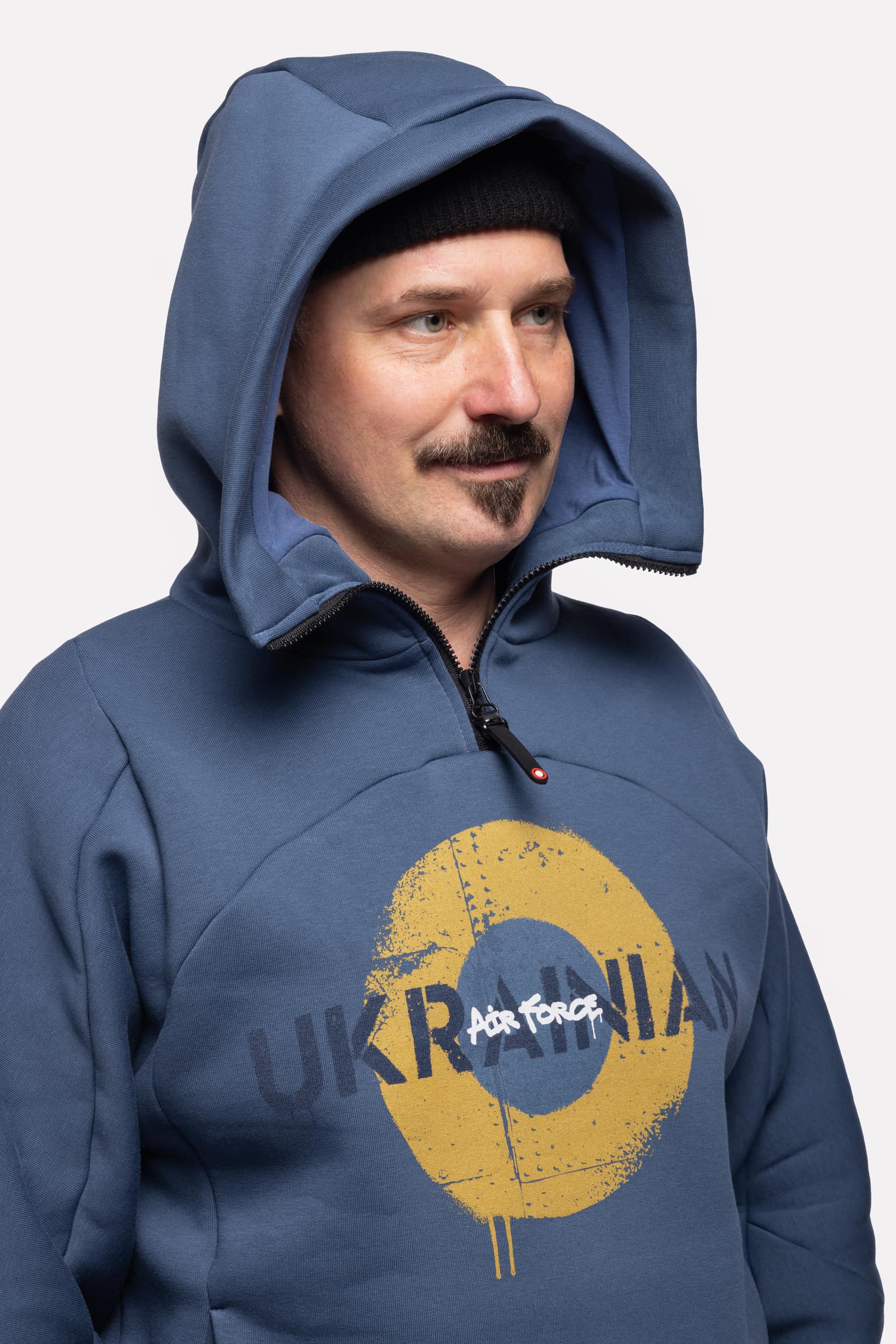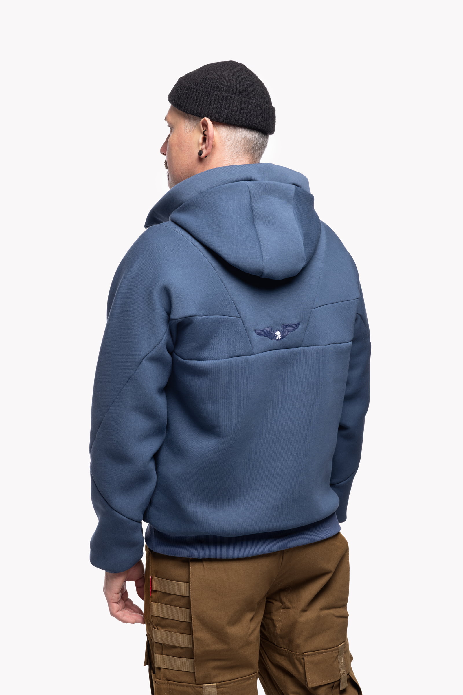 Вдягаєте це худі — і ви вже на іншій висоті. Колір неба і зручний крій створюють відчуття впевненості та свободи руху. Блискавка працює як елемент керування власним комфортом: розстібнули — більше свободи, застібнули — більше тепла.