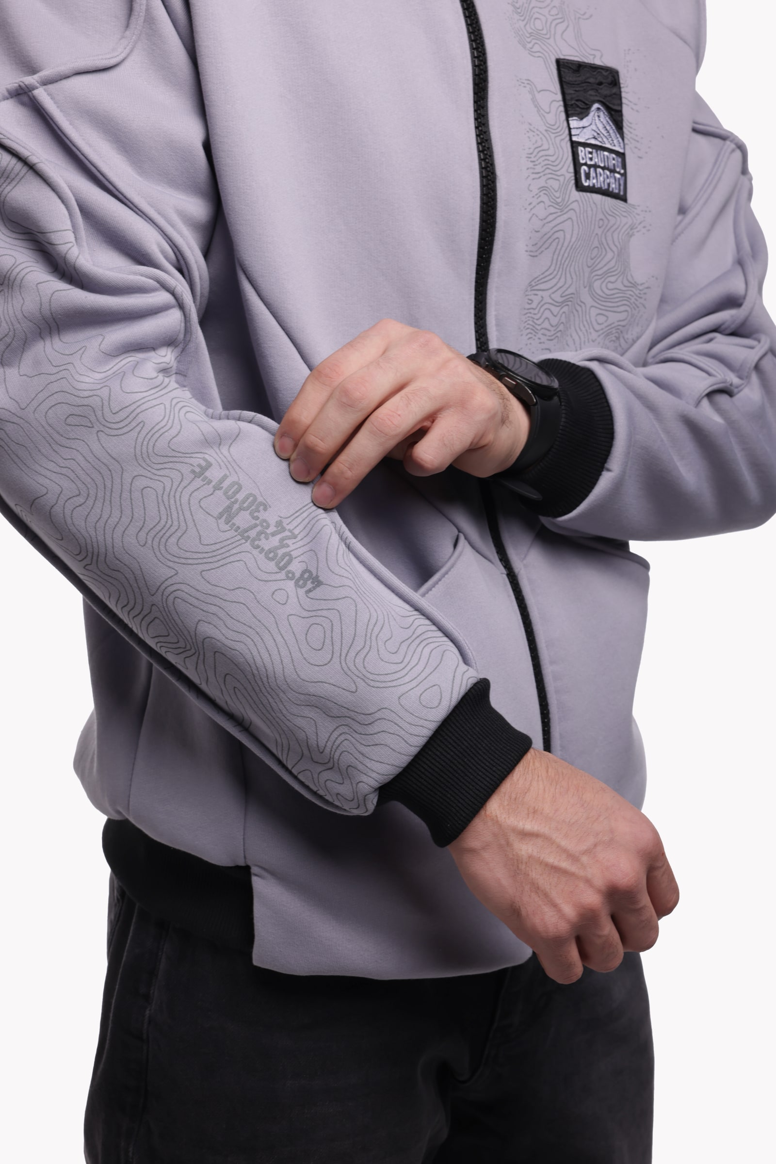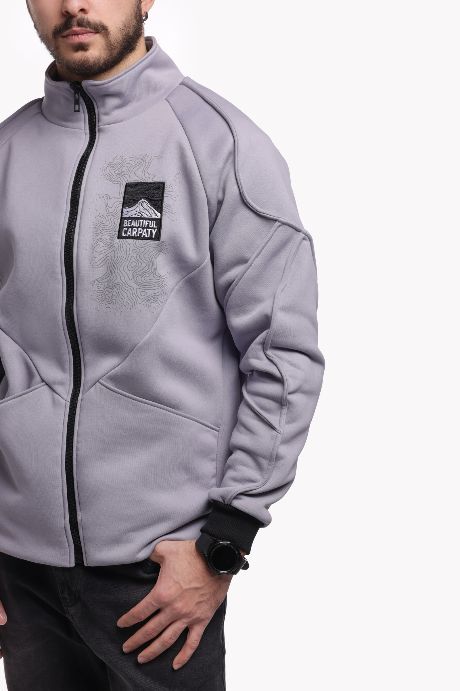A bold print of the Chornohora massif on the back dominates the view. We mapped the mountain topography and laid our signature Beautiful Carpaty patch on the front. Functional front pockets and a high neck collar seal the deal, keeping your hands and neck warm when Carpathian winds start howling.