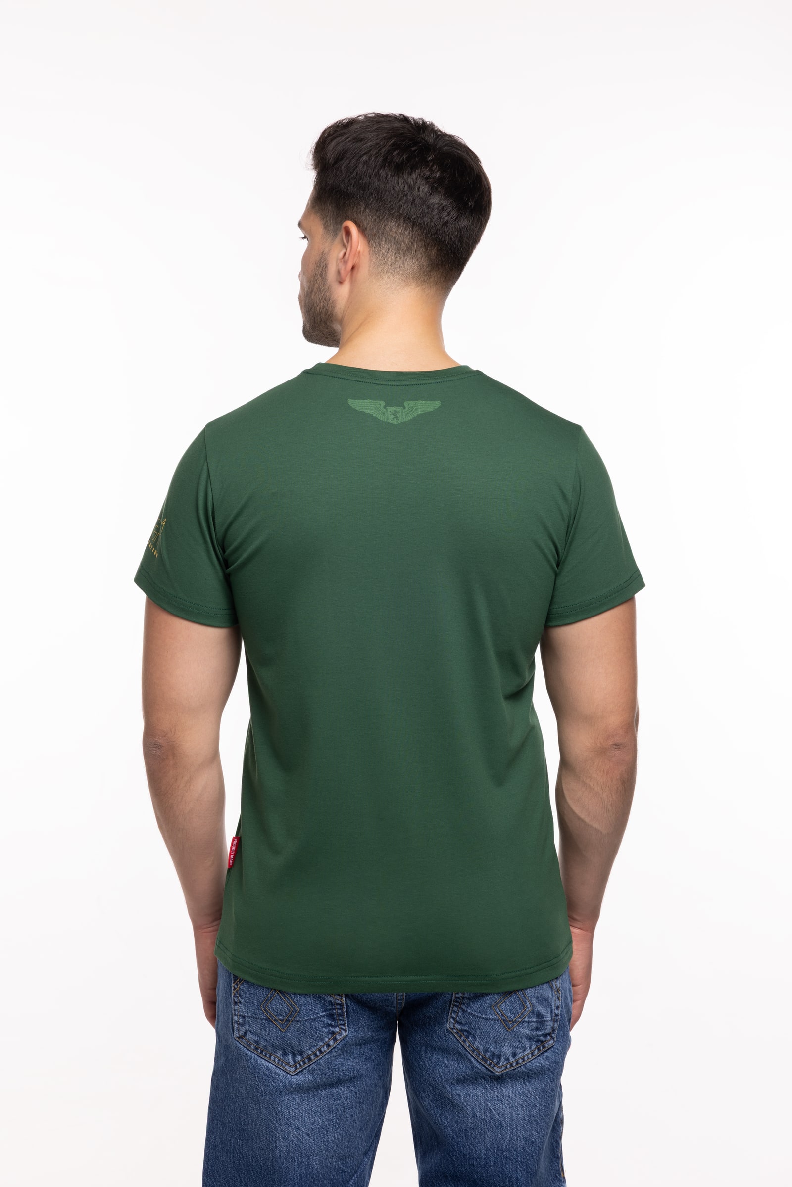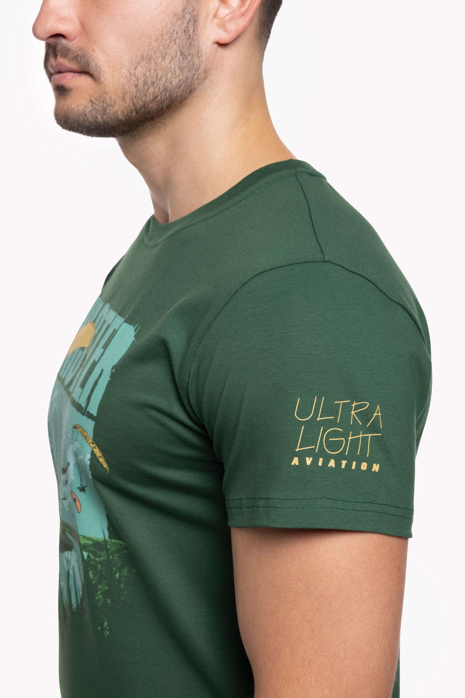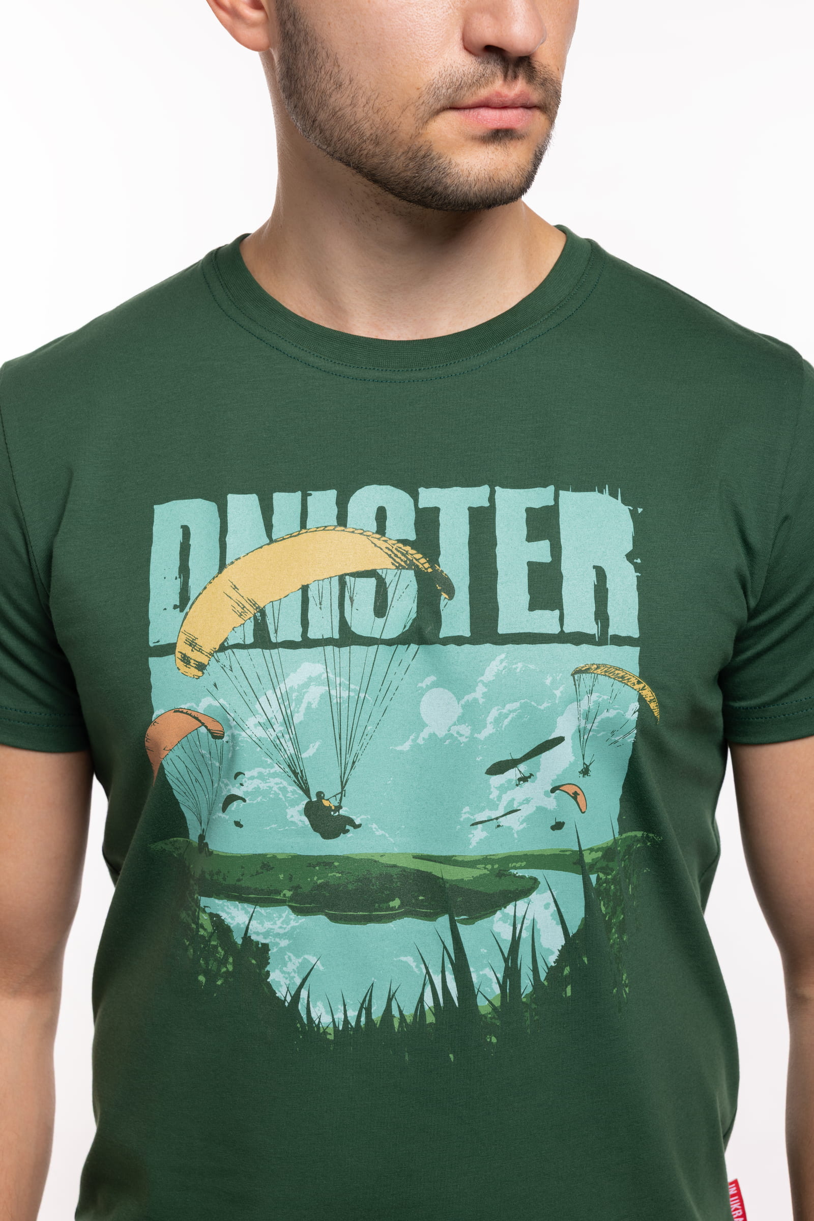 The idea behind this men’s T-shirt is inspired by the mighty yet tranquil Dniester River, carrying its waters through the canyon slopes, while above, paragliders glide smoothly — as if beyond time and space. It’s our tribute to dreamers who dare to explore horizons most beautifully. The rich emerald green of this T-shirt symbolizes peace, vitality, and harmony with nature — but above all, harmony with oneself.