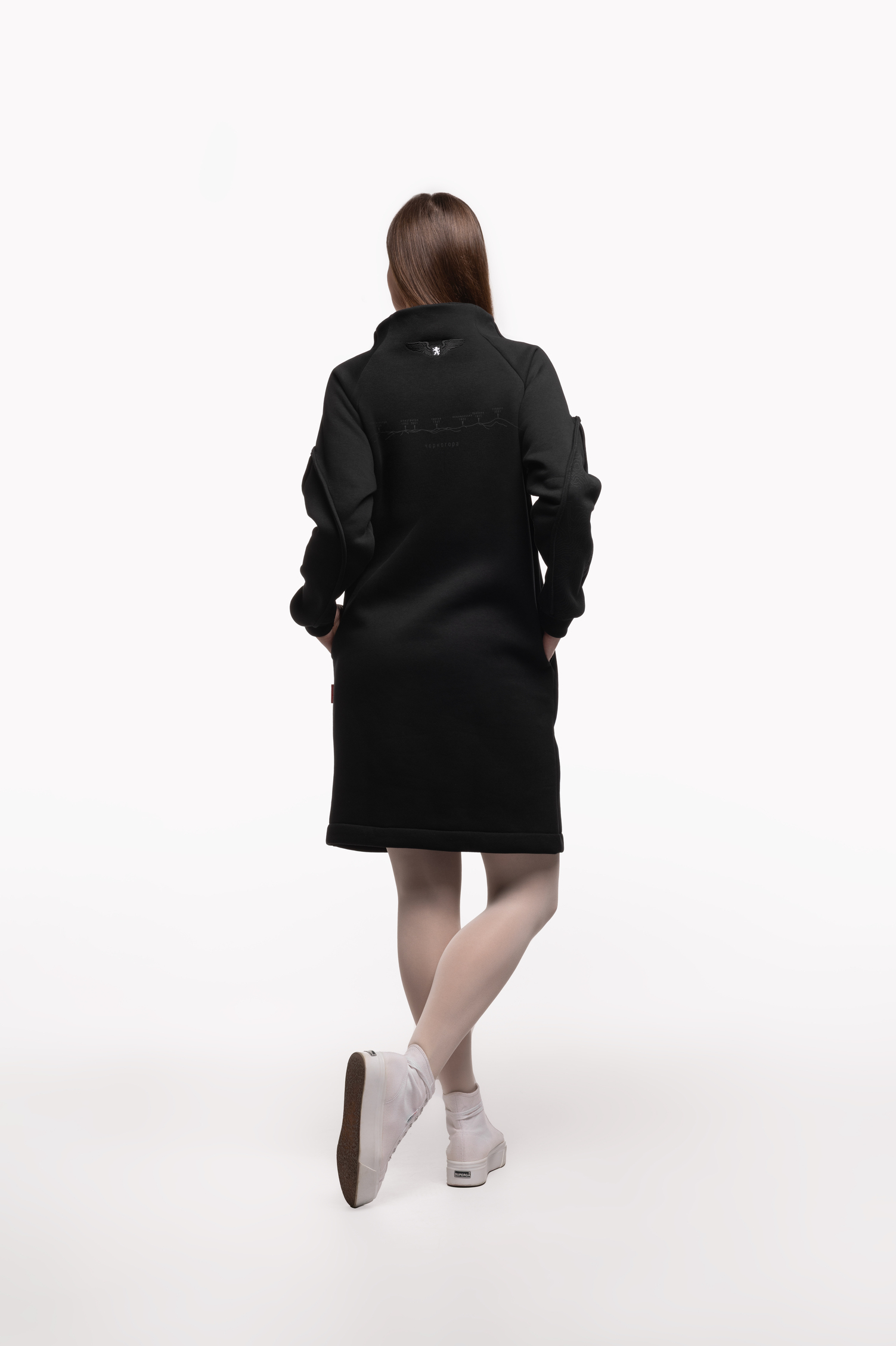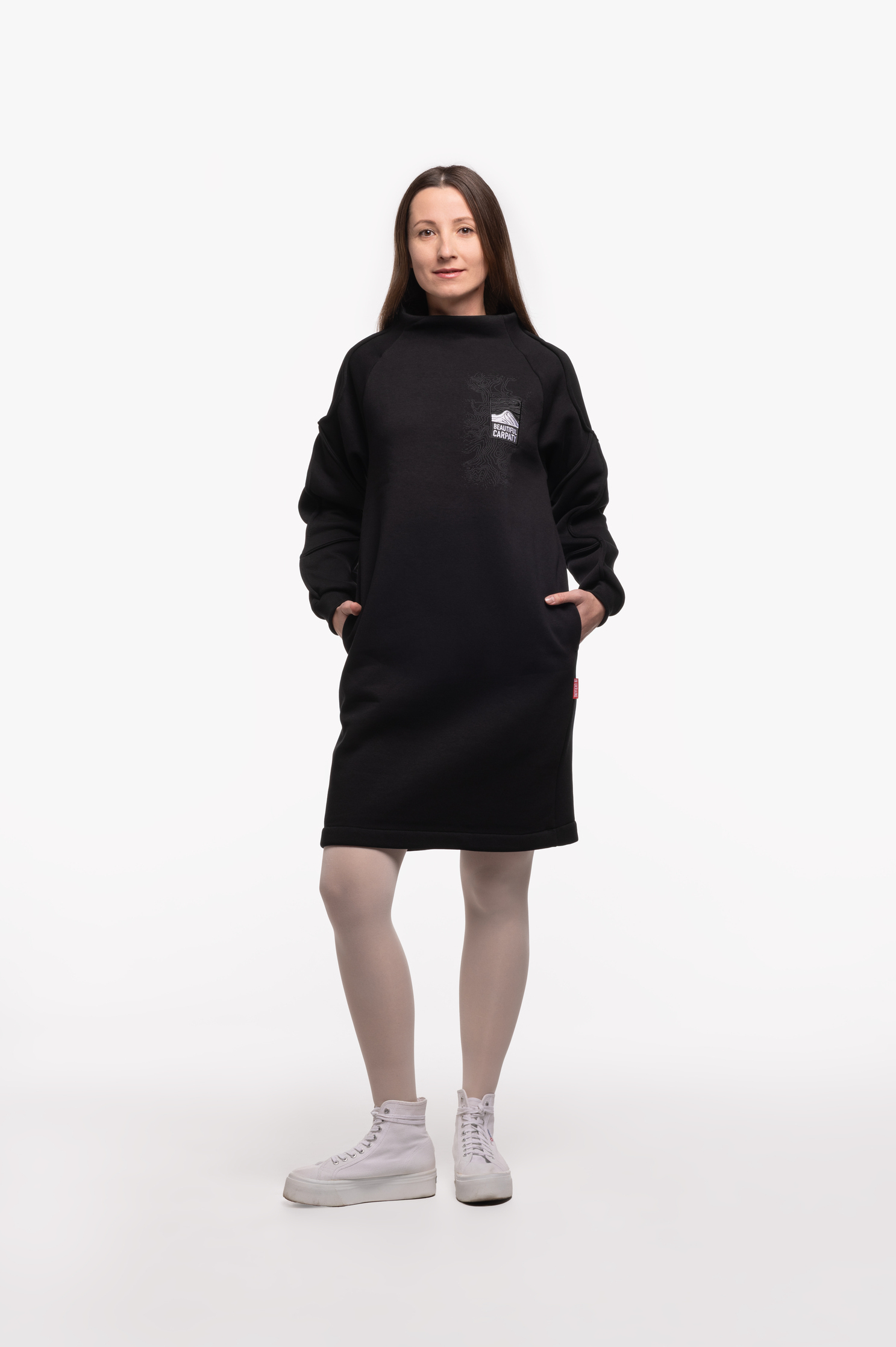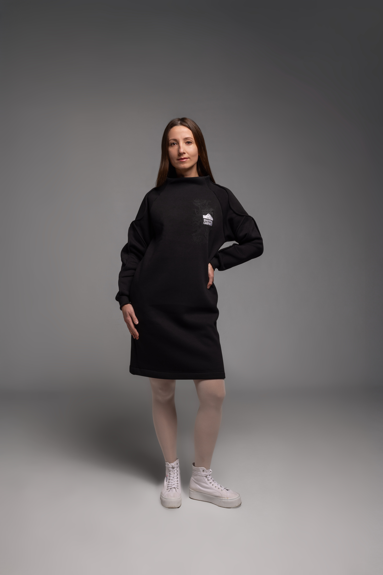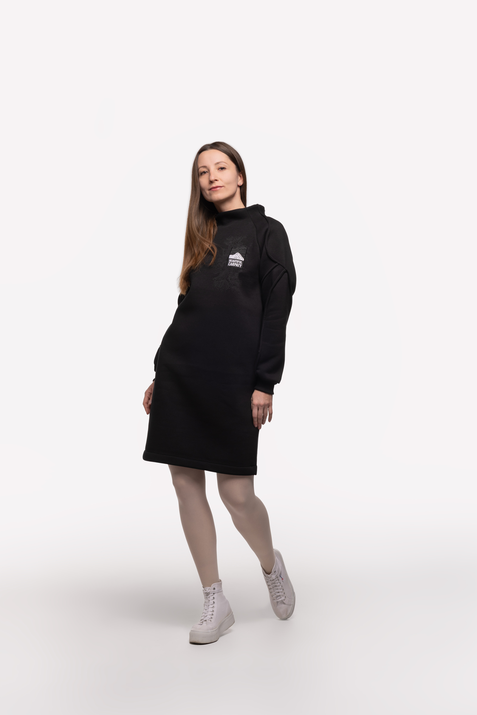 І в ці холодні сезони, щоб ви також гарно вбиралися та почувалися затишно, ми пошили для вас цю вдяганку. Тепла жіноча сукня зроблена з міцної бавовняної тканини, а всередині – м’який фліс. Спереду та на рукаві ми зобразили карпатський рельєф. А на спині – чорногірський хребет з його норовливими вершинами, та вишитий логотип Авіації Галичини, аби ви завжди відчували крила за плечима.