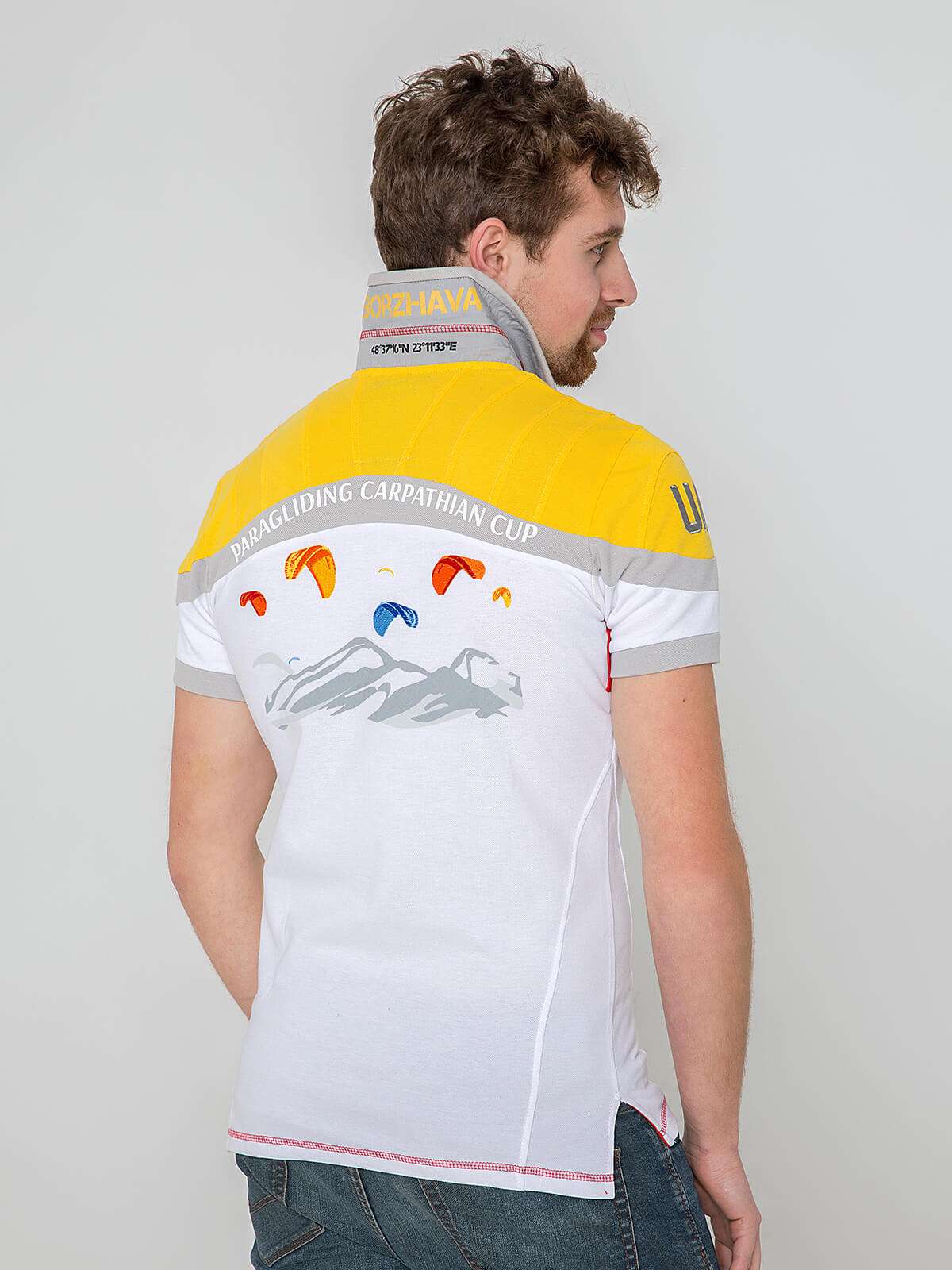 Na plecach — połączenie nadruku i haftu przedstawiające Borżawę z paralotniami, na kołnierzyku — jej współrzędne, a na rękawie naszywka Ukrainian Team & Ultralight Aviation. Całość dopełnia nasza metka Proudly made in Ukraine. Polo stworzone dla tych, którzy żyją z wiatrem u boku.