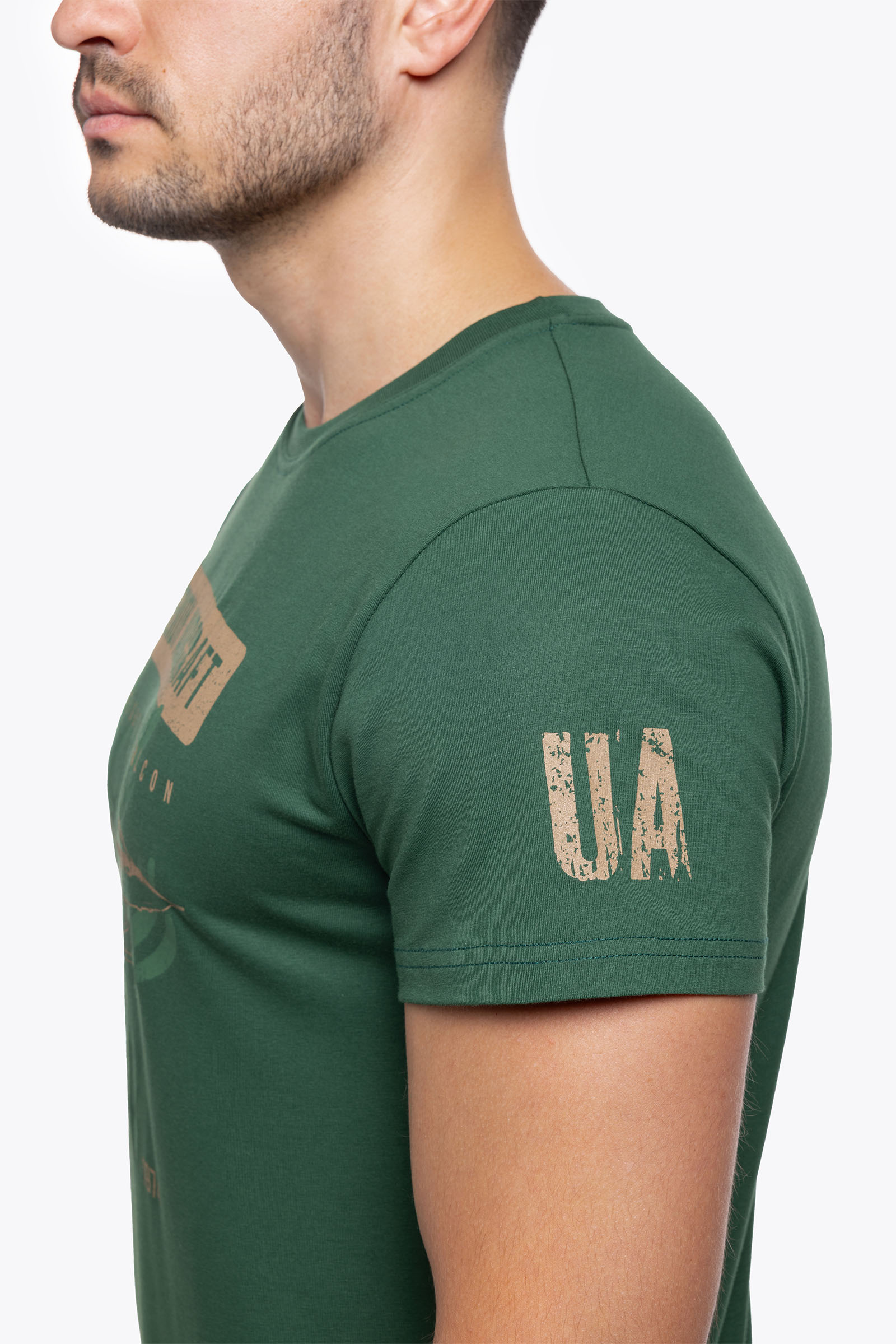 Męska koszulka, która od razu przyciąga uwagę intensywnym odcieniem i wyrazistym nadrukiem. Przedstawia myśliwiec F-16 – jeden z najczęściej używanych i najbardziej udanych samolotów bojowych na świecie. Nic dziwnego, że nosi nazwę „Fighting Falcon” – „Bojowy Sokół.” Zbudowany w 1973 roku, do dziś stanowi podstawę lotnictwa wojskowego w ponad 25 krajach, w tym także w Ukrainie.