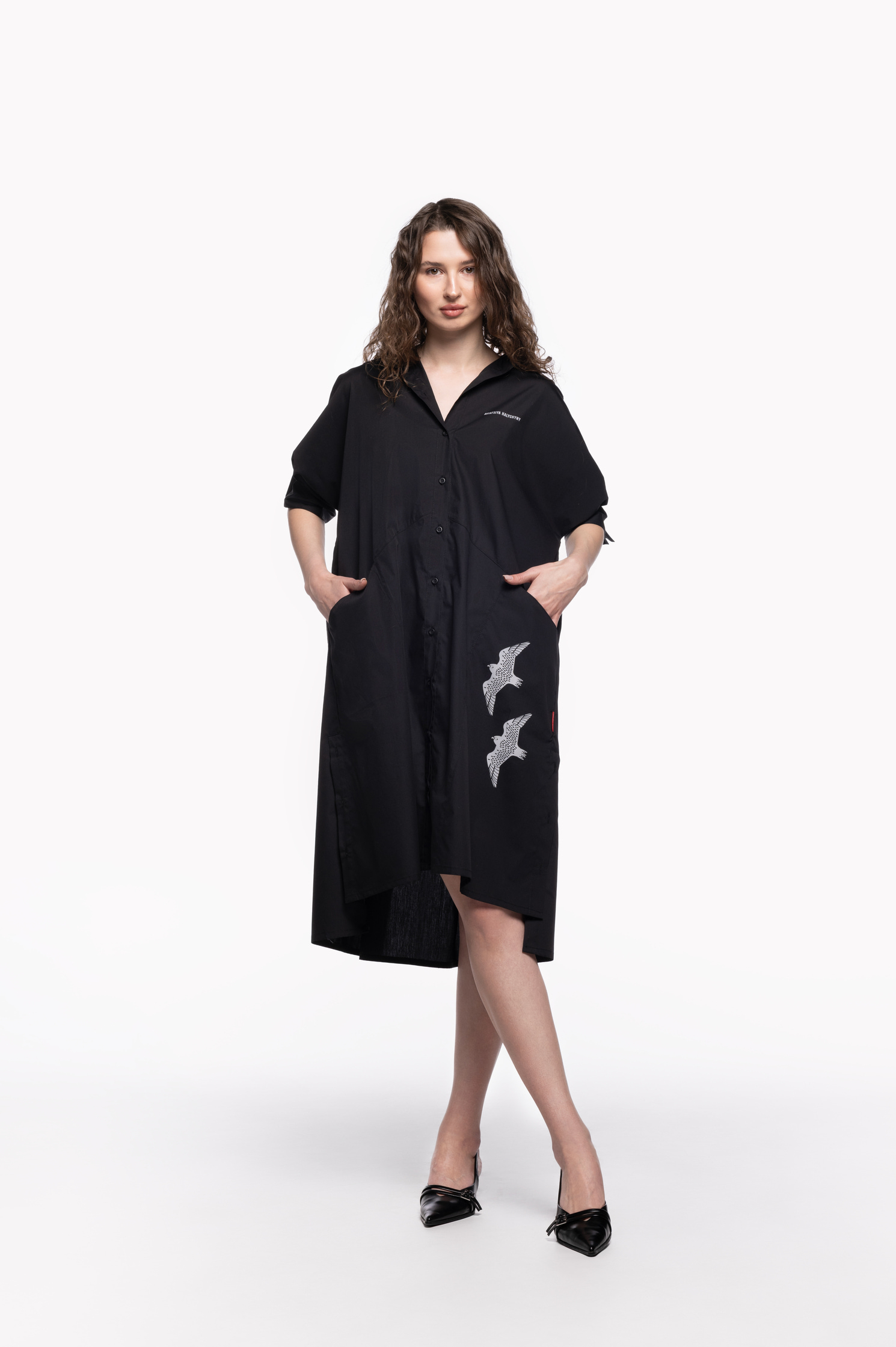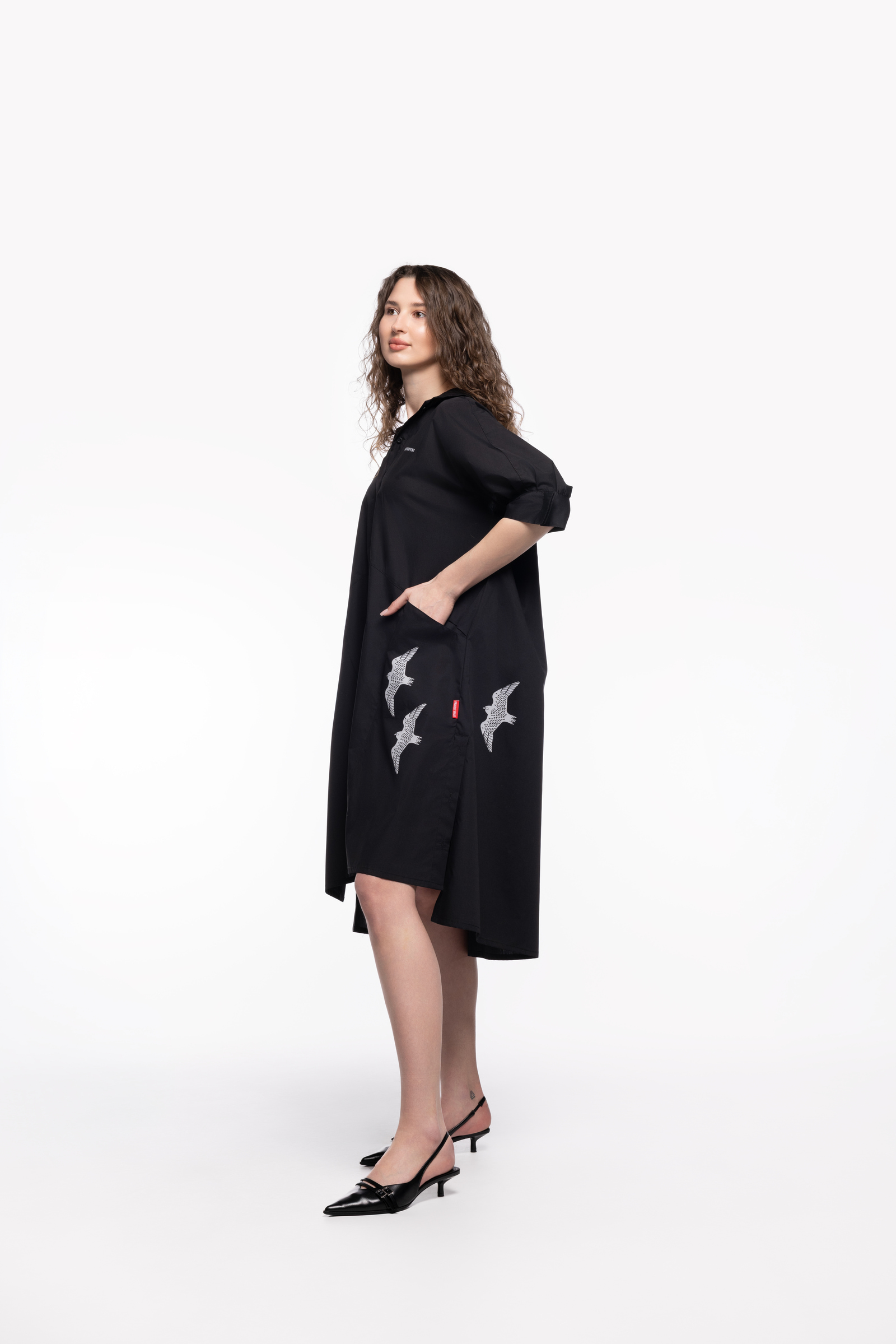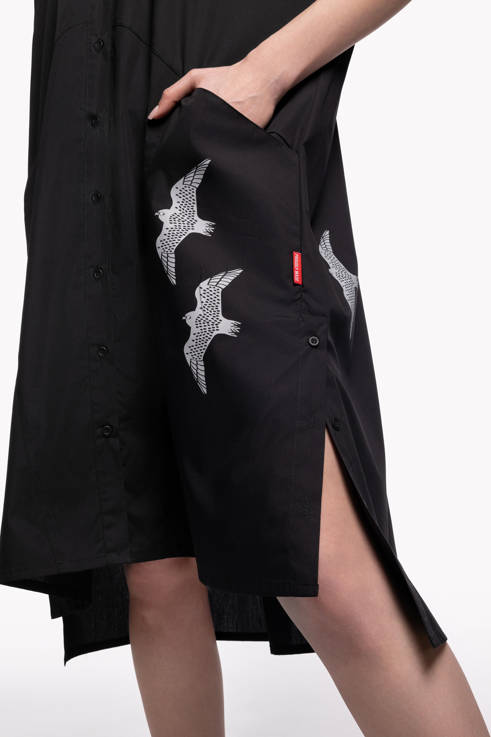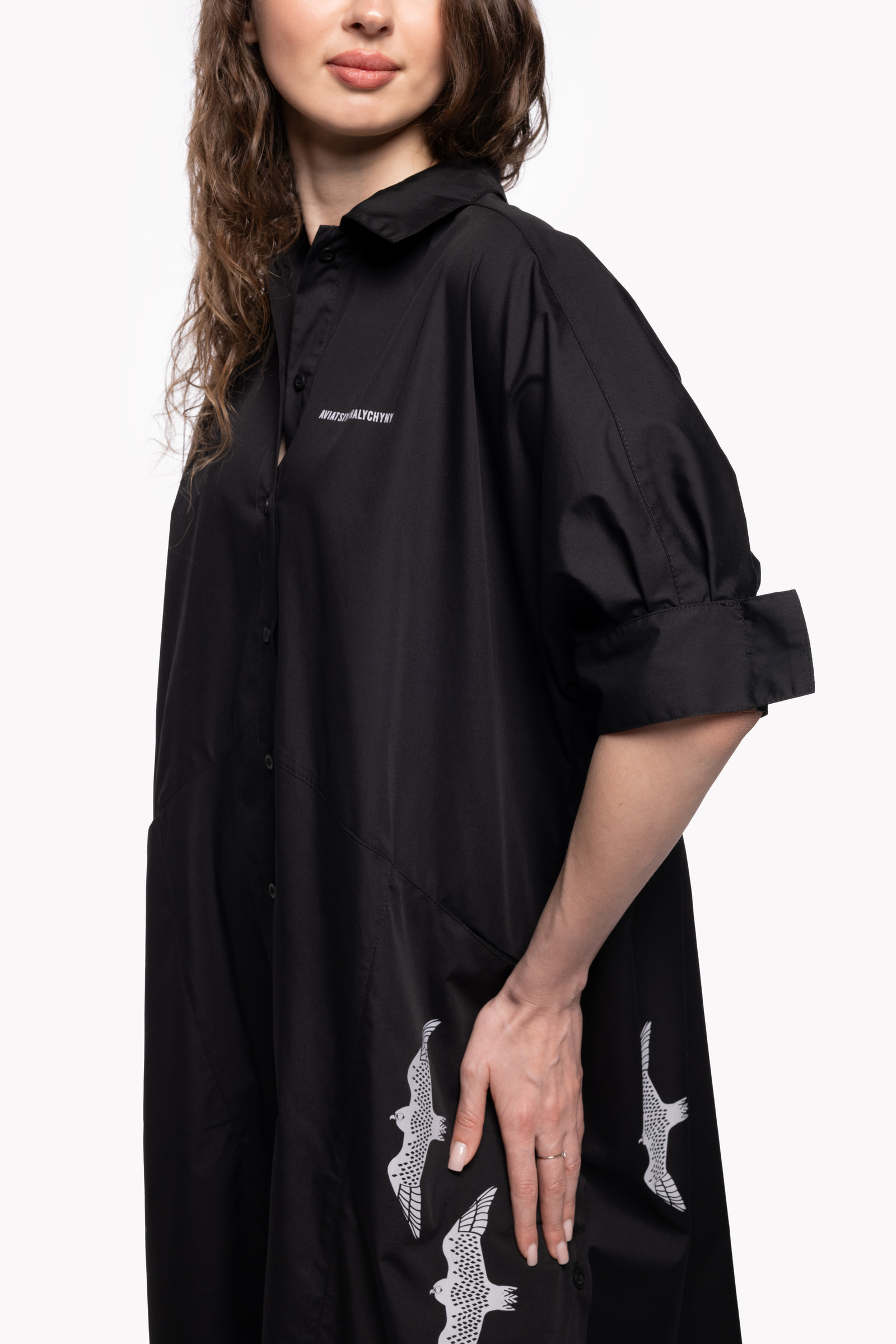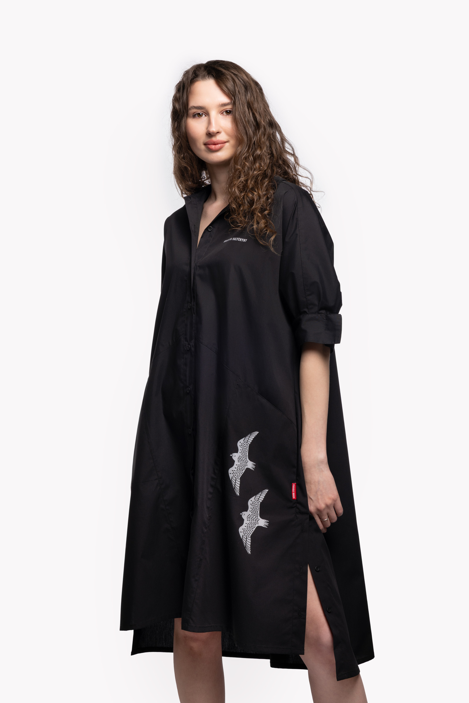 Графічне зображення соколів додає образу глибини й символізму. У цій сукні ви будете, як ті соколи, відчувати простір, обирати власну висоту і летіти впевнено та в задоволення.