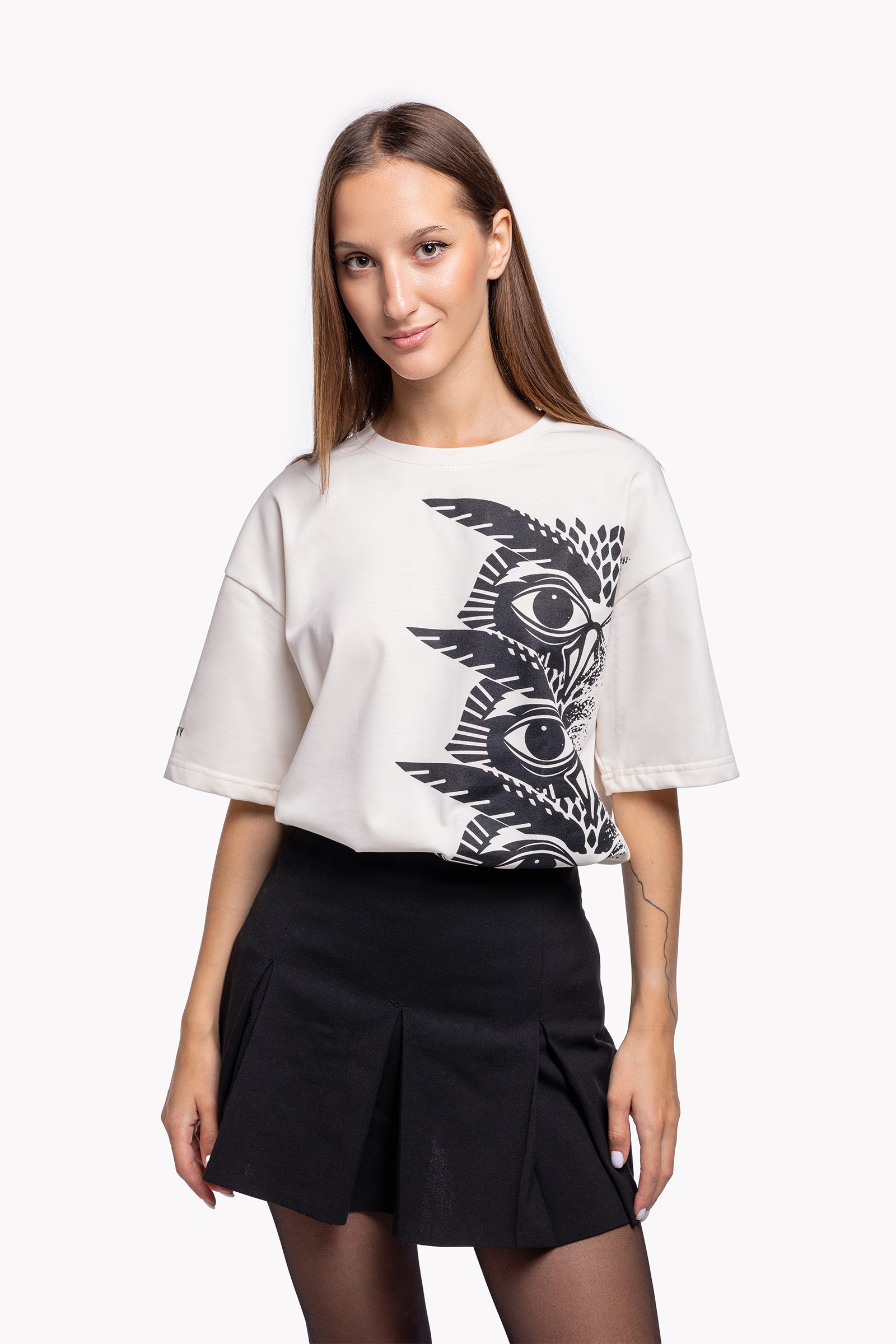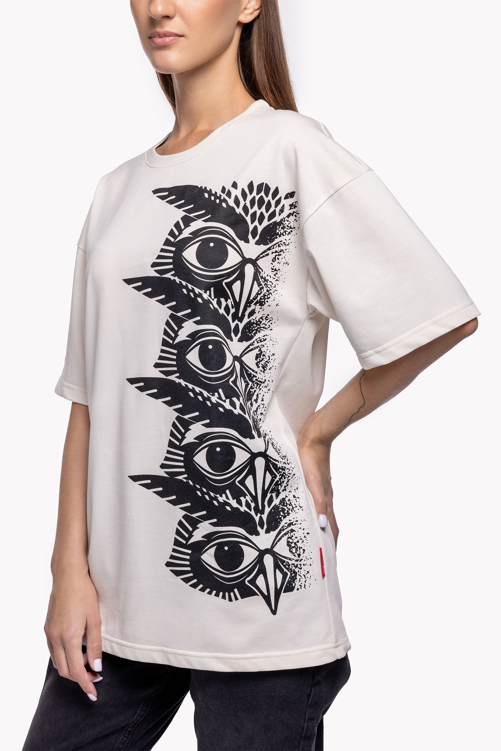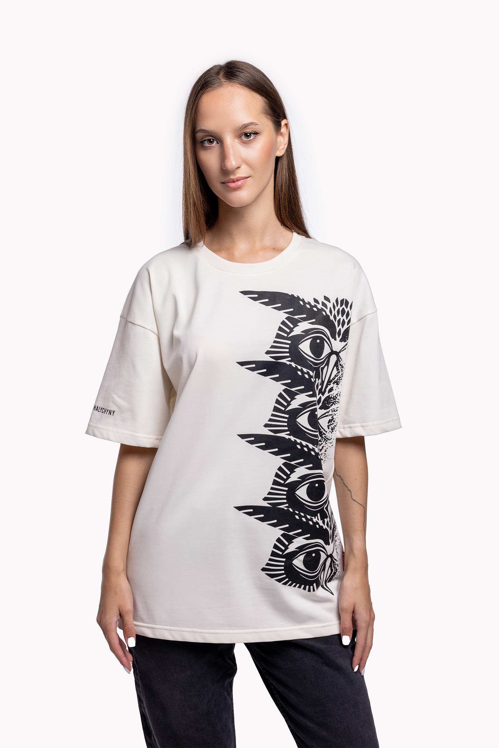 Ті сови так пильно дивляться, що то одразу говорить про впевнений характер того, хто носить цю футболку. Вона має лаконічний дизайн, тому є універсальною знахідкою для вашого гардеробу. При тому принт із совами додає образу стилю.