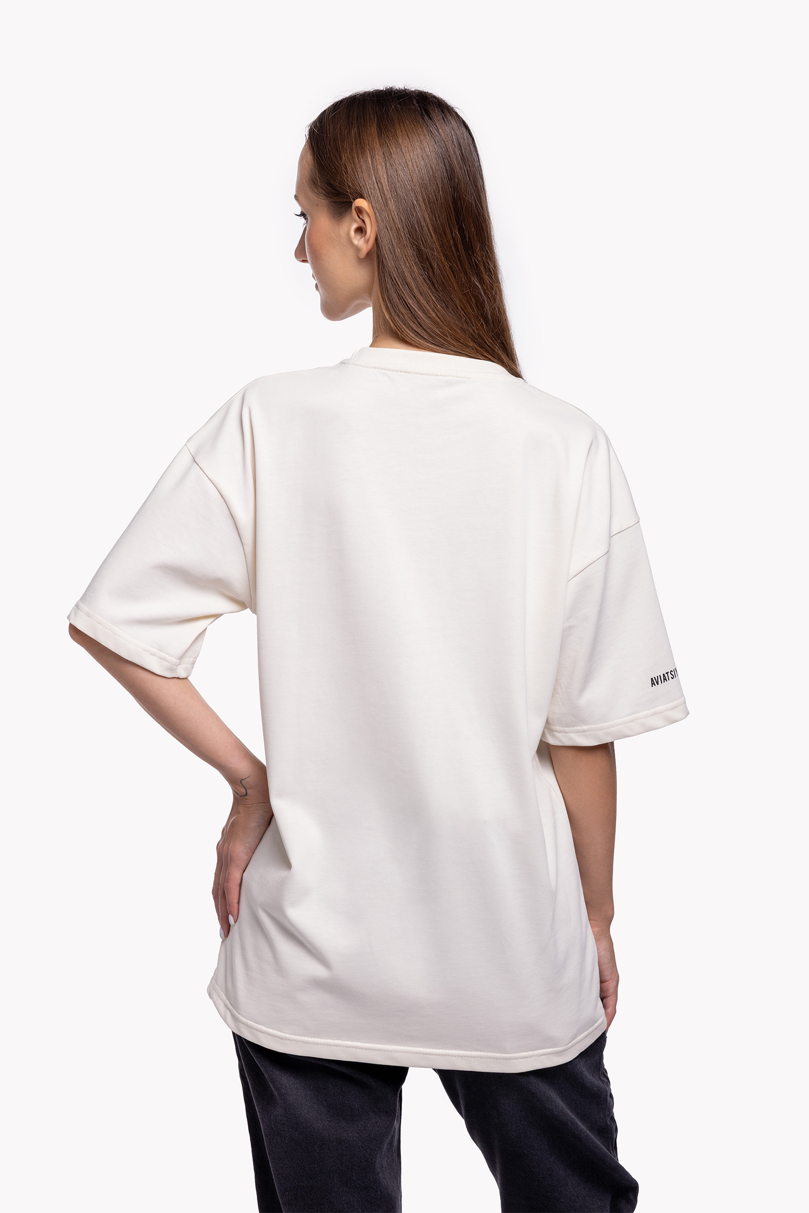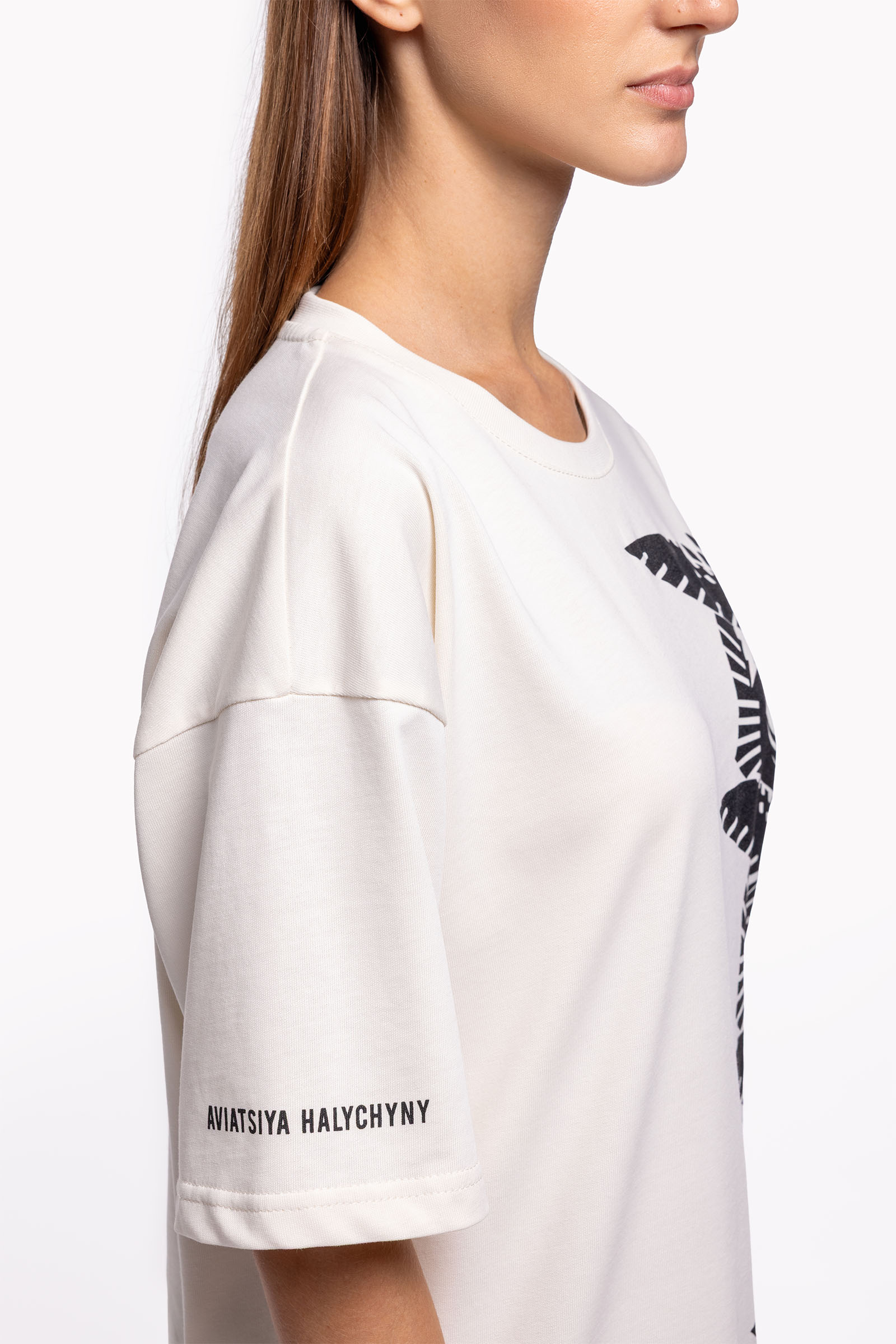 Жіноча футболка оверсайз крою дарує свободу руху та комфорт. На 100% виконана з бавовни, тож приємна до тіла, дихає й добре тримає форму.