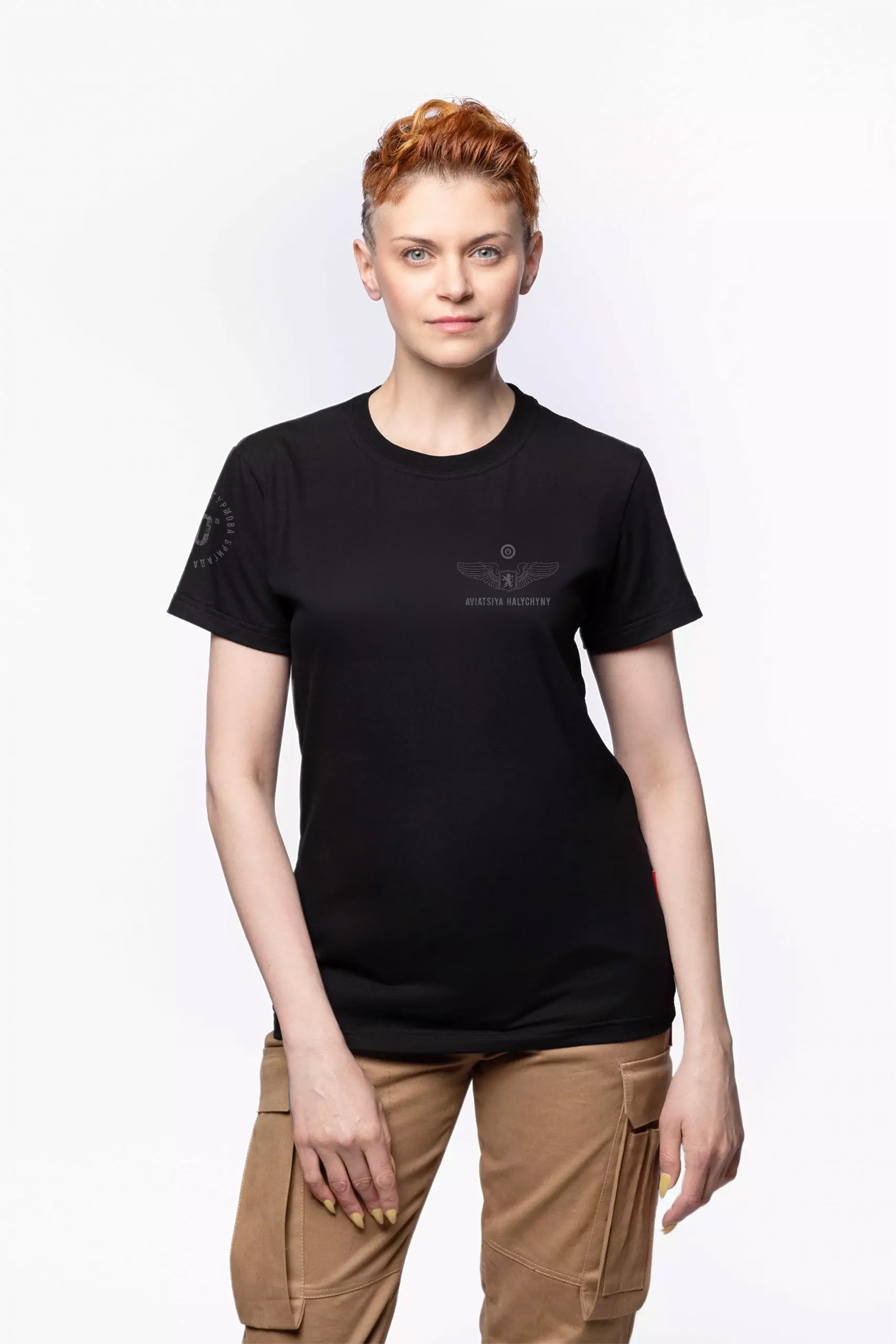 Ця чорна жіноча футболка — спосіб висловити підтримку й подяку воїнам. З кожної футболки 400 гривень спрямовується на потреби бригади. Водночас це зручна базова річ, яка легко поєднується з повсякденними образами завдяки стриманому монохромному дизайну. Обираючи цю футболку, ви додаєте до гардероба універсальну річ і долучаєтесь до підтримки тих, хто боронить країну.