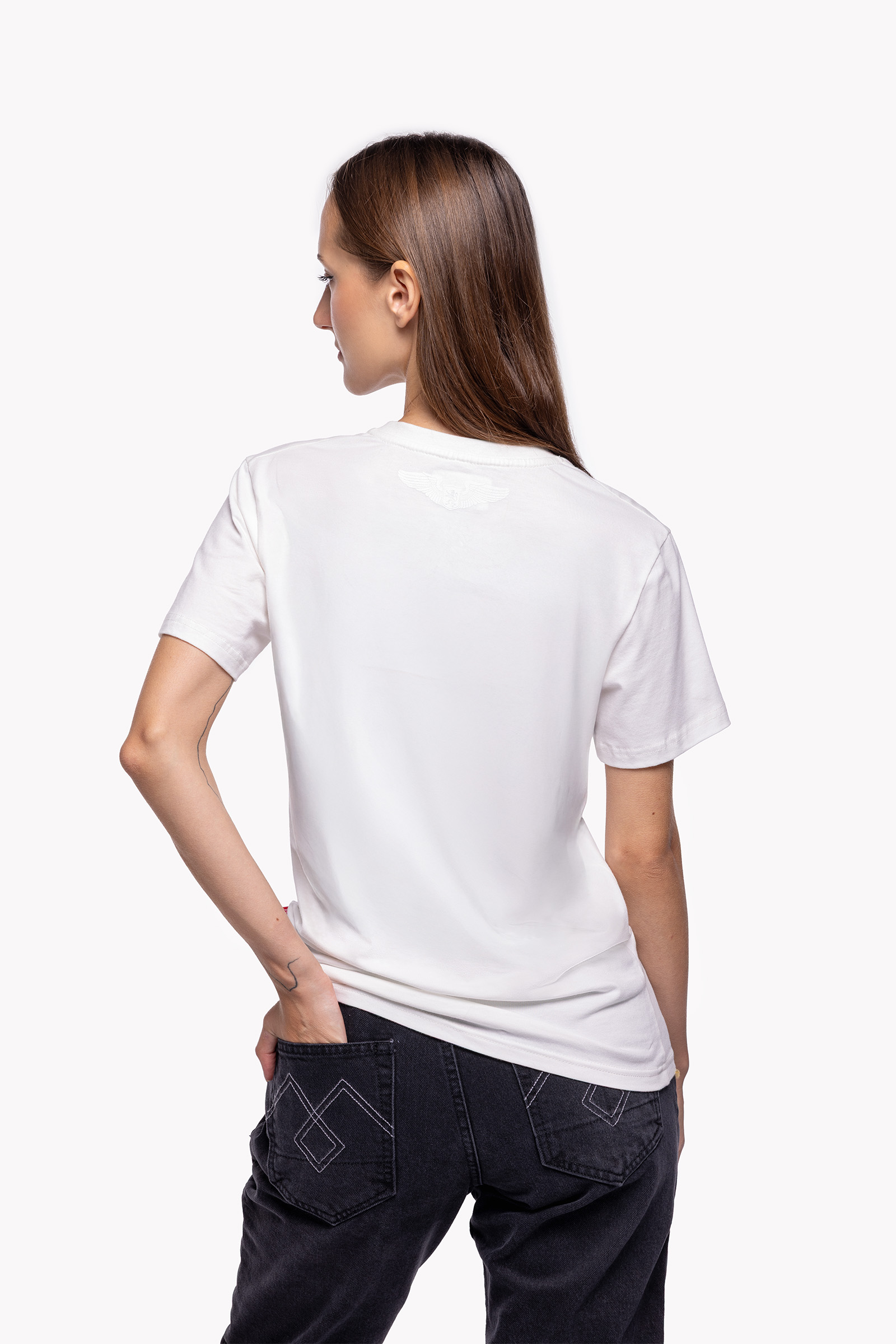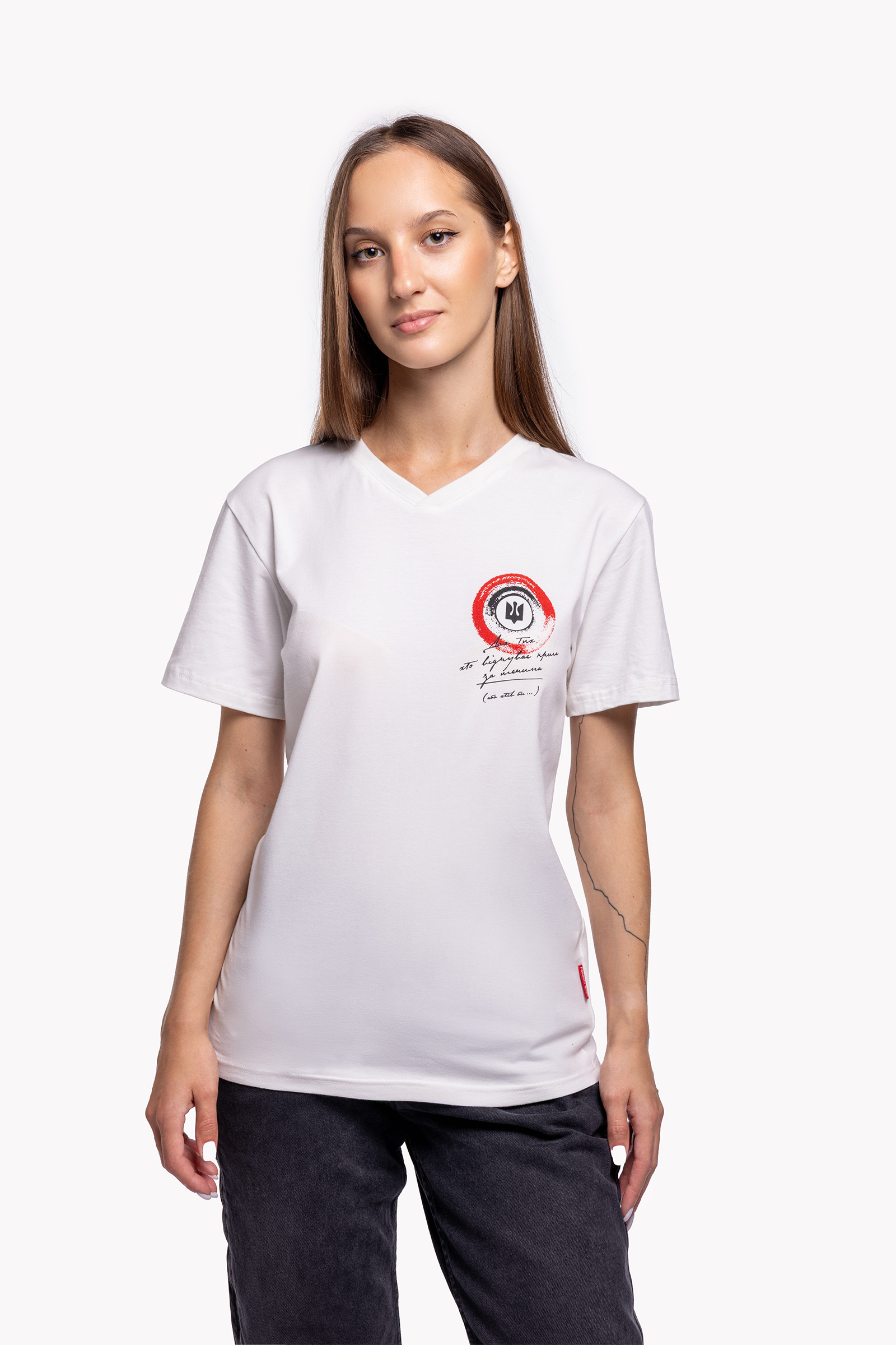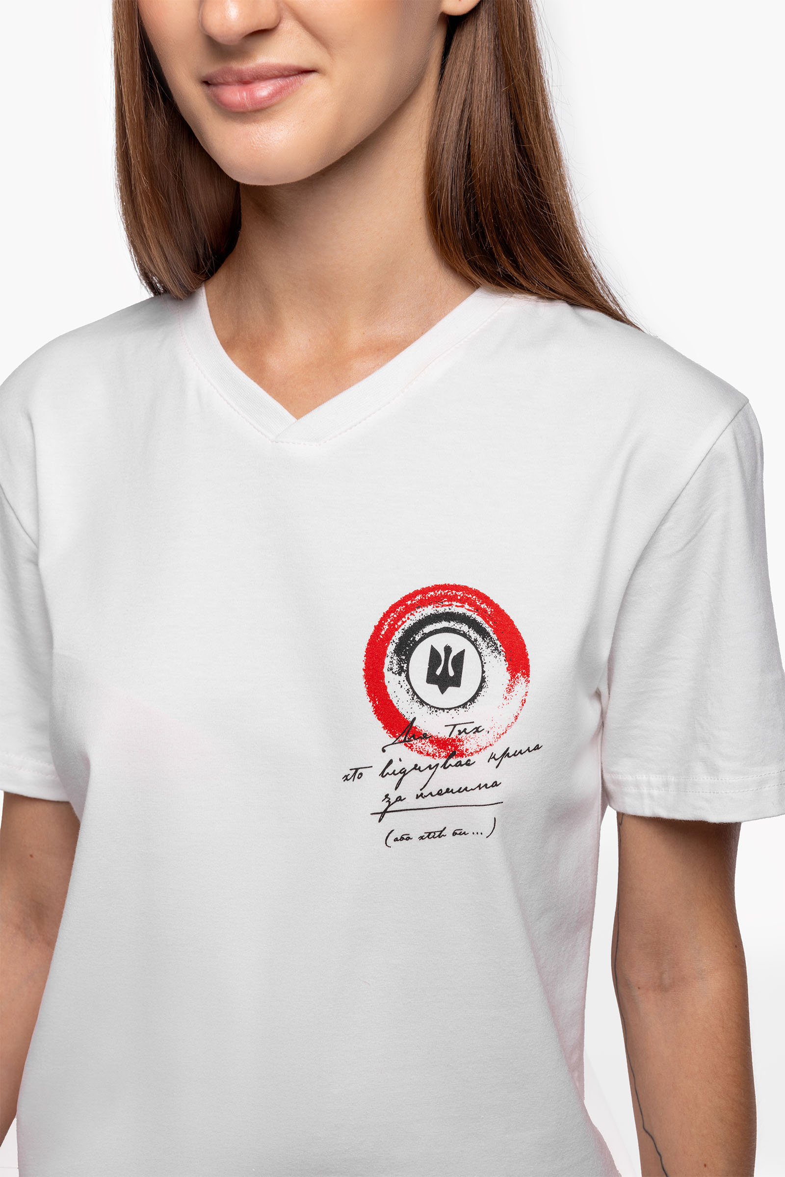 Просто, але з характером. Ця жіноча футболка хоч і мінімалістична, втім одразу показує позицію. На молочному тлі виразним акцентом є червоно-чорний рондель. В його серці – тризуб, а доповнена композиція фразою «Для тих, хто відчуває крила за плечима (або хтів би…)». З цими символами «Авіація Галичини» – від самого свого заснування. Ми віримо, що маємо однодумців. Може це ви?